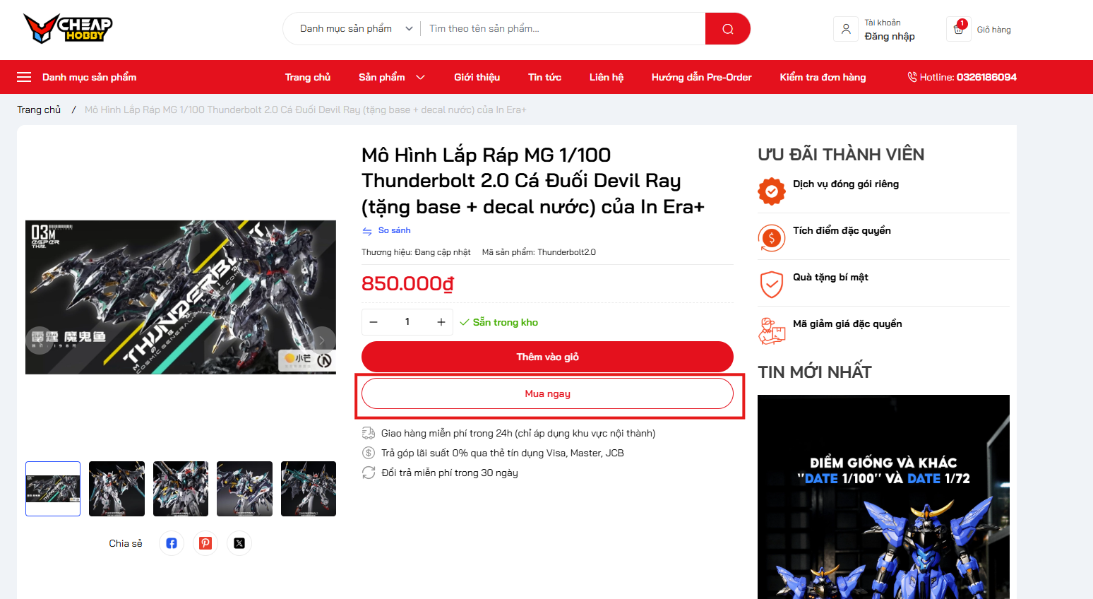 Bước 1: vào trang sản phẩm đặt cọc đặt hàng chọn nút mua ngay: