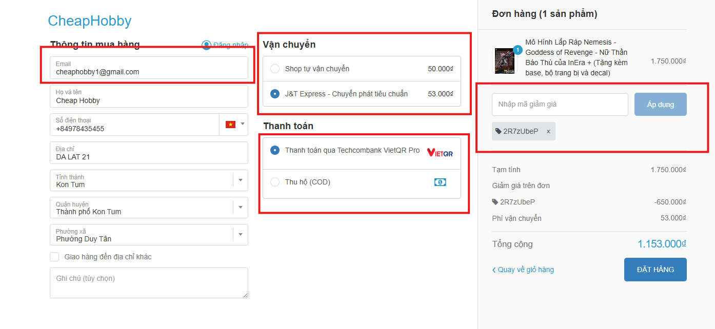 - Nếu bạn có mã giảm giá, hãy nhập chính xác mã vào ô "Mã giảm giá" tại trang thanh toán.